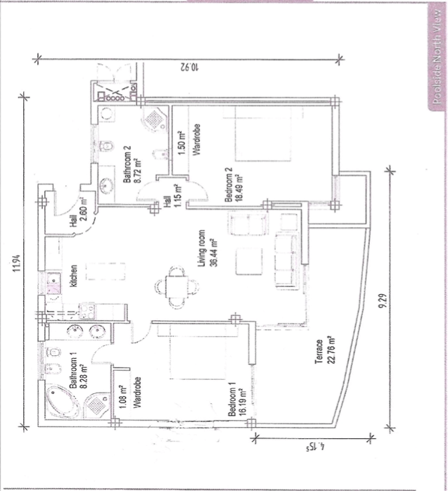 Morfitt Properties Tenerife presents this generous 2-bedroom apartment for sale in the well-regarded El Rincon development, situated in the sought-after area of Los Cristianos. The property offers more than 100m² of interior space and includes an entrance hallway with built-in storage, a bright open-plan layout with a fully equipped kitchen, dining area, and lounge. The apartment features a family bathroom and two large double bedrooms with fitted wardrobes; the main bedroom additionally benefits from a private en-suite. Both the principal bedroom and the living room open onto a terrace that enjoys morning sunshine and overlooks the landscaped gardens and pool area.