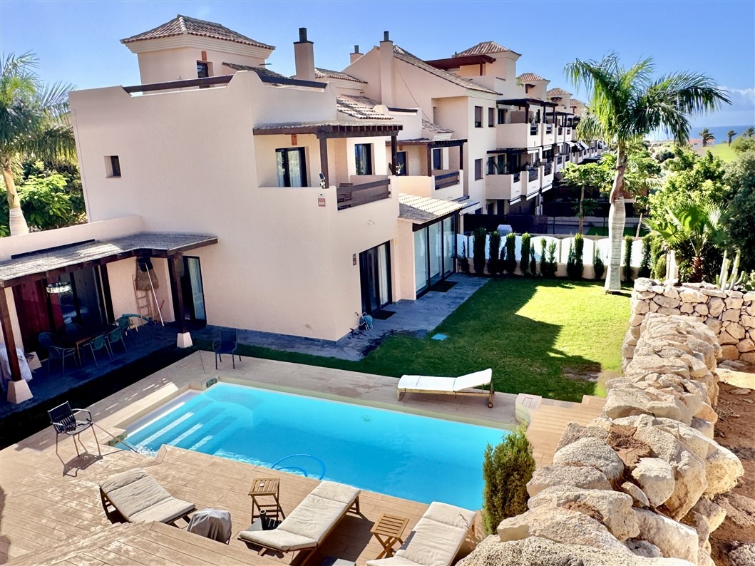 The town has an area of 467 m2 in total, distributed in a large garden with direct leaving the golf course, a wide pool with heated water, jacuzzi, also has a private viewpoint to enjoy dinner, barbecue, and contemplate the Sunset with the fantastic views of the sea, the mountain and golf course.