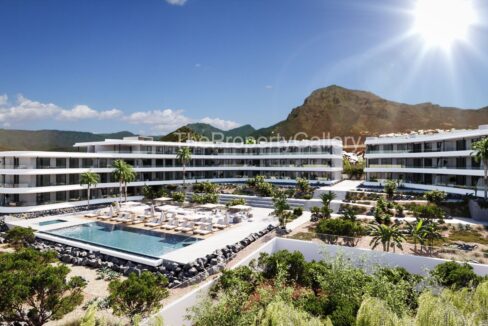This new development can be found in the El Madronal residential area, near Costa Adeje. El Madronal is about 10 minutes away from the Costa Adeje and El Duque beaches, which are known for their stunning beauty. This is a particularly attractive neighbourhood since it has the peace and quiet of a residential area while still being only a five-minute walk from the X-Sur shopping centre, which has a variety of shops, pubs, restaurants, and a movie theatre. This project is going to be developed in two phases and it will have a total of 67 luxury apartments with 1, 2, or 3 bedrooms. These apartments will be spread out over three floors and centred around a stunning heated swimming pool and beautiful green tropical gardens. Each unit will come equipped with a separate storage area as well as an underground parking spot. All the properties have been designed to make the most of the light and views. This means that the living room and all the bedrooms have been positioned to the front with direct access to the large private terrace with sea, mountain or swimming pool views. The fully equipped kitchen will have a modern layout and appliances made by Bosch or a comparable brand. Each of the bedrooms comes equipped with its own built-in wardrobe, and the en suite bathroom of the master bedroom will have a rain shower. Views of the ocean, heated pool, mountains or the surrounding gardens may be available depending on the apartment you choose. Construction is scheduled to begin in 2022 and is expected to be finished in 2025. Please contact us for more information about availability and pricing of other units. Liability: Please note The Property Gallery receives property information, documents, plans, etc. From the seller and it isn't always possible to verify it. While The Property Gallery requests correct information from the seller, we recommend seeking independent legal advice to verify property documents and details prior to any property purchase. Therefore it is the responsibility of our clients to ensure that the information and details about the property is correct.